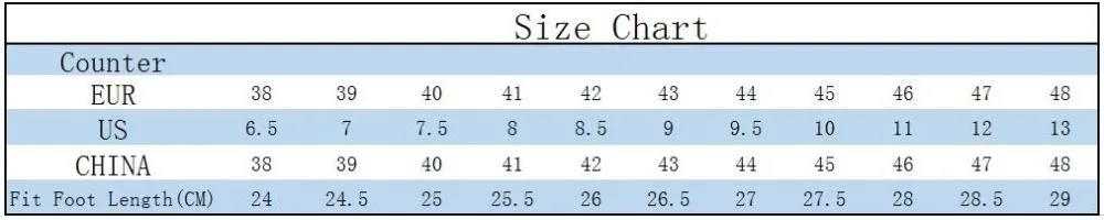 | Tamanho do sapato | 10, 11, 12, 14, 6.5, 7, 7,5, 8, 8.5, 9, 9.5 |